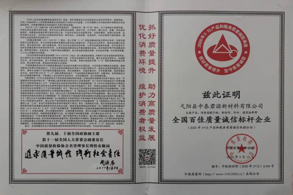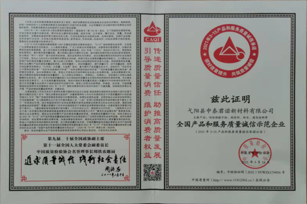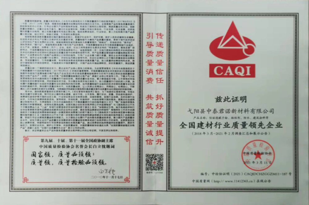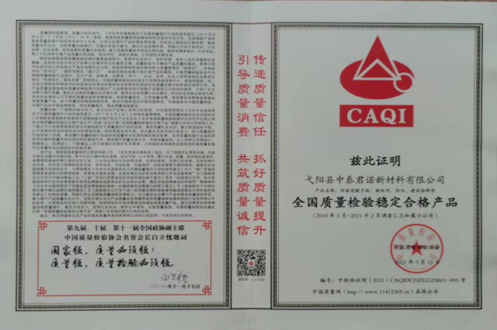 中國質(zhì)量檢驗協(xié)會證書